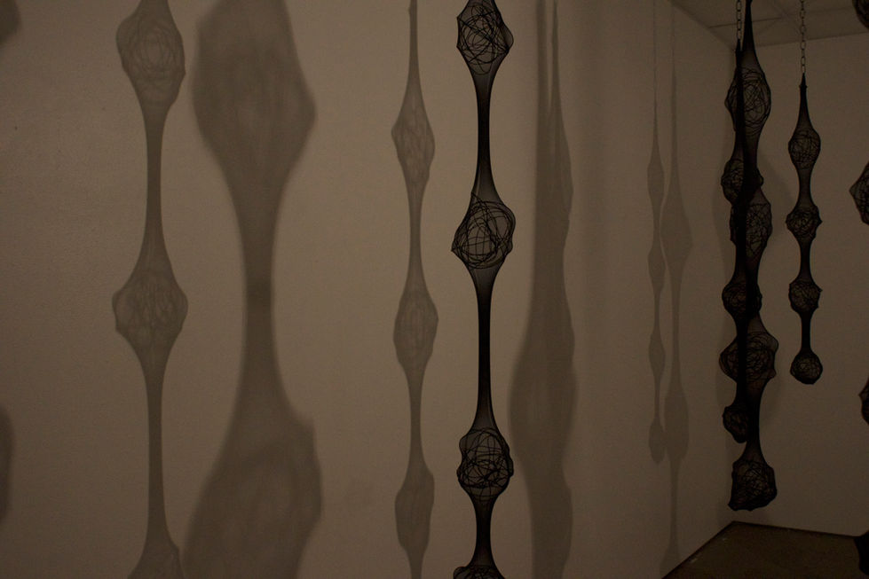 Spatial Oscillation is an installation piece in which the idea of a three-dimensional drawing is further explored. This concept started by making sculptures with wire following the path of a single line that would dynamically shape itself in response to my bodily movements and hand gestures. Soon, it started to feel as if I was creating a three-dimensional drawing suspended in space.